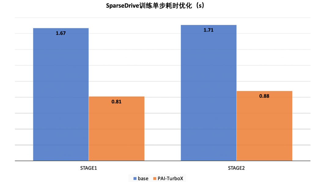 实测结果显示,在自动驾驶的3D物体检测模型BEVFusion训练任务中,PAI-TurboX可以将训练时间缩短58.5%;在实时在线矢量化高精地图构建模型MapTR训练任务中,PAI-TurboX可以将训练时间缩短53%;在端到端自动驾驶模型SparseDrive训练任务中,PAI-TurboX 可以在感知模块训练和联合训练两个阶段获得明显的速度提升,相同训练步数下可分别缩短51.5%和48.5%。