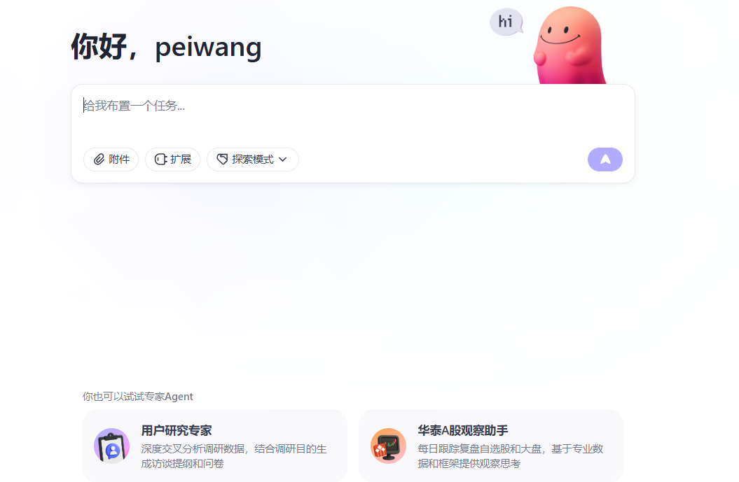 目前,内置了“华泰 A 股观察助手”和“用户研究专家”两个专家 Agent。“华泰 A 股观察助手”可生成投研日报,针对股票分析具体问题进行答疑解惑;“用户研究专家”可实现问卷交叉分析与访谈纪要智能整理。不过,专业 Agent 标注“限时免费”,暗示未来可能采用订阅制商业模式。