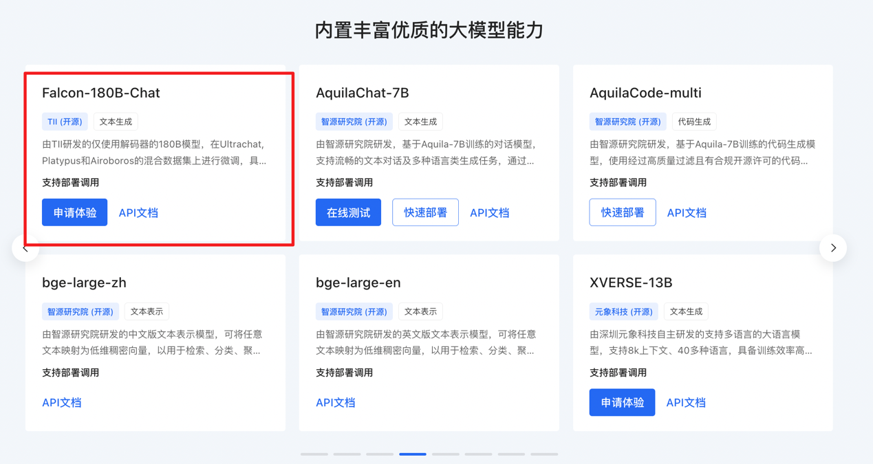 据了解,为满足开发者和企业多样化的模型需求,百度智能云千帆平台此前就已经接入了 Falcon-7b和Falcon-40b-instruct。截至目前,平台已纳管了包含 Falcon、Llama 2全系列、RWKV、Stability Diffusion在内的42个国内外主流大模型,稳居国内模型数量第一。
