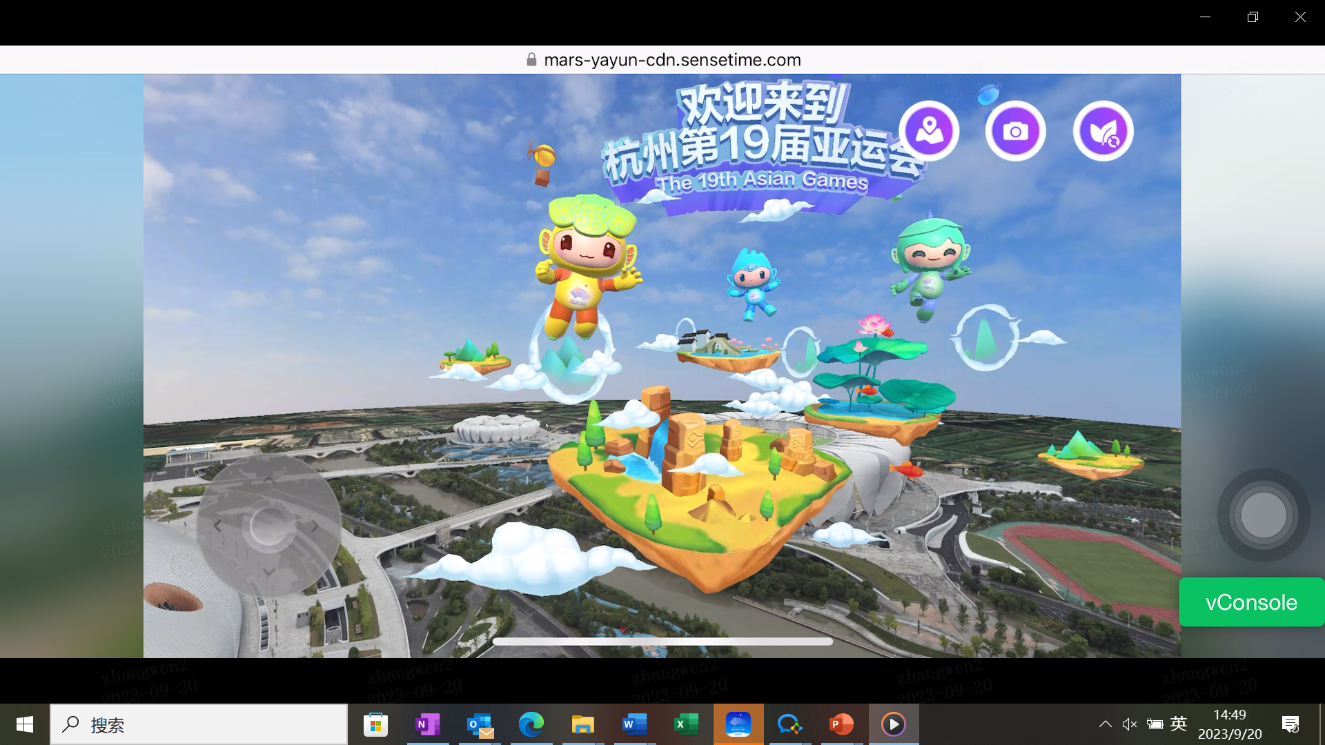 在提供线下实景AR观亚运体验的同时,商汤还创新打造了线上虚拟空间沉浸式体验“亚运数实空间”,让大家足不出户,通过手机便可在亚运场馆的数字世界中感受真实亚运的现场氛围。在亚运数实空间中,“江南忆”将化作金牌导游,带领观众漫游杭州。观众不仅可以在高空视角鸟瞰宏伟壮阔的亚运馆群全貌,还可以通过自由视点实时漫游的方式在三维空间中穿梭“大莲花”、“小莲花”、游泳馆等标志性的亚运场地,在欣赏艺术感、科技感和运动感并存的建筑设计的同时,享受“亚运迎宾秀、亚运之声、亚运知识科普”等互动体验。